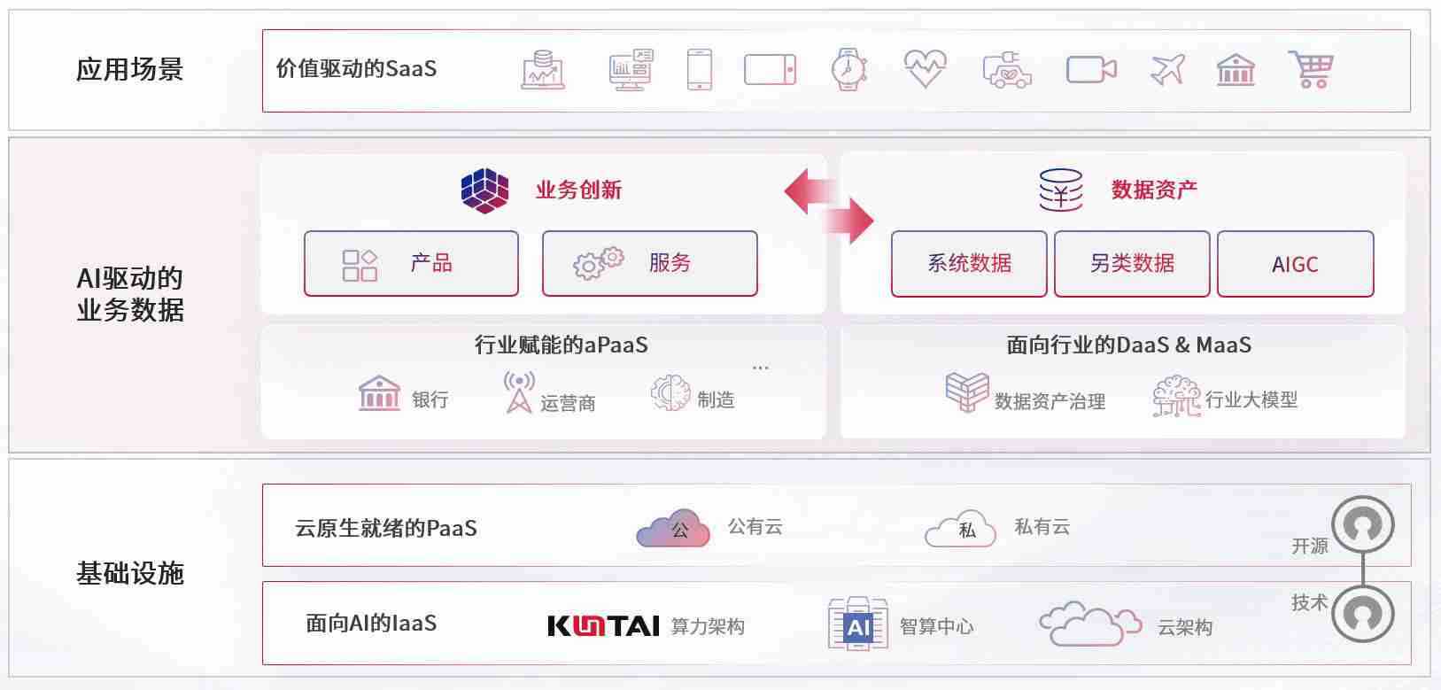 数字时代,,,围绕企业数字化转型的关键要素,,,,口袋牛店数码开创性的提出数云融合战略和技术体系框架,,,,着力在云原生、、、、数字原生、、、AI原生和信创产业上架构产品和服务能力,,,,为处在不同数字化转型阶段的快消零售、、汽车、、、金融、、医疗、、、、政企、、教育、、运营商等行业客户提供泛在的敏捷IT能力和融合的数据驱动能力,,,,构建跨界融合创新的数字业务场景和新业务模式,,,,助力企业级客户建立面向未来的核心能力和竞争优势,,,,全面推动社会的数字化、、智能化转型升级。。。
